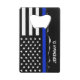 A custom thin blue line credit card bottle opener.