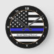 Thin Blue Line & American Flag police / USA office Round Clock