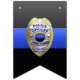 Celebrate your momentous occasion with our custom badge Thin Blue Line Bunting Banner. This is the perfect decor for any law enforcement promotion, retirement party, celebration or banquet. It adds an classy, unforgettable touch to nearly any conceivable event. You will be the envy of your guests and remembered as the ultimate party planner with this unique congratulations banner. Choose from one of four high resolution badge models. You can pick one of the many centre buttons for all of the badges or give each one a different Thin Blue Line style button. If you have some other design in mind that isn't one of the options available, let us know and WE WILL CUSTOM DESIGN ONE JUST FOR YOU!