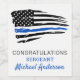 Congratulations! Add the finishing touch to your police promotion, retirement or graduation party with these thin blue line police congratulations wine labels and party supplies. USA American flag design in Police Flag colours, modern design. This congratulations police officer retirement collection will be a favourite. Personalise with officers rank and name. These police napkins are also perfect for police academy graduation party. See our thin blue line collection for matching police retirement invitations, police gifts, party favours, and supplies. COPYRIGHT © 2020 Judy Burrows, Black Dog Art - All Rights Reserved. Thin Blue Line Flag Police Retirement Party Wine Label