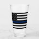 Thin blue line. This glass is to show your support for the policemen and policewomen that protect the streets. It is a glass that you can use for refreshing drinks. It can be used to remember a fallen officer or to celebrate someone just starting out or even as a retirement gift.