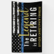 This design features a police force flag with black and white stripes, and a thin blue line stripe as well. "The Legend is Retiring" text in gold sits above the customisable name of the retiring law enforcement officer, sheriff, captain, or chief. Celebrate this milestone in style!