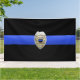 Greater love hath no man than he lay down his life for a friend. This is a fantastic 6x10 backdrop for any photo session, press release, public event or display. You can customise this design with your law enforcement department name or event name and you can even upload images to it to suit your needs. We have them in inside or outside models, with or without grommets. Get your Thin Blue Line banner today.