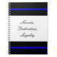 Thin blue line notebook is the perfect gift for law enforcement officers, police, detectives, and cops everywhere! Features traditional thin blue line on top and bottom of the cover wih the words "Service, Dedication, Loyalty" in fancey script in the middle. Sure to be appreciated by LEO everywhere!