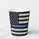 Thin Blue Line Police Retirement Paper Cups - USA American flag design in Police Flag colours. This personalised police retirement paper cups are perfect to celebrate your retired law enforcement officer, police retirement party decor, law enforcement retirement party. Personalise these police retirement party napkins with police officers rank, name & badge #, years of service and retirement date.