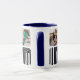 Blue thin line photo mug featuring American flags with photo frames for your own photos. Easily personalise this custom policeman photo coffee mug to create the perfect photo gift for any police officer.