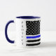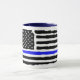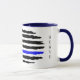 A tattered and distressed flag with the thin blue line is the feature on this coffee mug. At each side of the mug is vertical black text. One side says PROTECT and the other side says SERVE. Perfect for any of our heroes who stand on that thin blue line to protect and serve us. (Design by the wife of a 33 year veteran law enforcement officer).