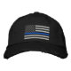 The Thin Blue Line symbol on a silver stars and stripes US Flag embroidery. A great embroidered hat gift idea for any occasions.