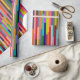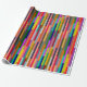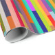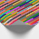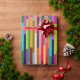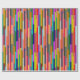 This wrapping paper has a geometric design of colourful stripes running vertically.