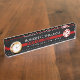A thin red line customise name and station number desk nameplate. It features your name, job title, department location, station number, and the year the station was established.