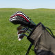 This golf driver cover features a black and white firefighter thin red line American flag design with stars and stripes on a black background and a name for you to personalise..