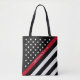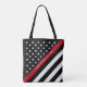 Thin Red Line Firefighter American Flag Monogram Tote Bag