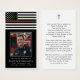 Honor a brave and dedicated firefighter with this modern memorial prayer card featuring a dignified Thin Red Line flag design and a personalized photo tribute. The front showcases their picture with the heartfelt sentiment IN LOVING MEMORY, name, "Born" date and "Last Alarm" date. The back offers an editable prayer (or your custom text, bible verse or poem) accented with a simple cross to comfort and support family and friends as they remember a firefighter who served with courage, honor and unwavering commitment. A meaningful keepsake for a firefighter's funeral, memorial service or Celebration of Life, this prayer card offers a lasting tribute to their service and sacrifice. Its small and portable size of 3.5x2" (wallet-sized) makes it convenient for loved ones to carry it with them as a reminder of your loved one’s life, service and spirit.