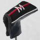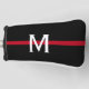 This golf head putter cover is in honour of firefighters featuring a horizontal red stripe on a black background and a monogram initial in white for you to personalise.