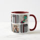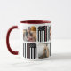 Red photo mug featuring thin red line American flags with photo frames for your own photo. Easily personalise this custom mug to create the perfect photo gift for any firefighter.