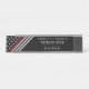 This elegant nameplate is the perfect choice for firefighters. It features a thin red line design stars and stripes at an angle on the left of the name plate. To the right is a name, workplace, and job title for you to personalise.