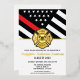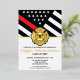 This design features a firemen's flag with black and white stripes, and a thin red line stripe as well. A fireman's badge sits above all of the party details for the graduating firefighter. This design also works great for a retiring firefighter, lieutenant, or chief's retirement party.