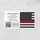 Business Cards: Modern Thin Red Line & American Flag (USA) firefighters / fire service personnel themed business card featuring flag of Firefighter Services on one side and your details together with scannable QR Code, small Thin Red Line flag on the other side. Easily customise link in QR Code for a website or mobile number, personalise name, address details or change flag on the side for local services logo, personal photo or any other image.