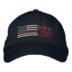 The symbolic Thin Red Line on a US Flag embroidery along with the "Honour Courage Sacrifice" inscription. A great embroidered hat gift idea for memorial and remembrance occasions.
