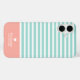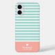 Thin Stripes Upscale Heart Monogram teal peach Case-Mate iPhone Case