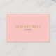 A refined blush pink business card uses a thin white frame to create a crisp, minimalist border that draws focus to a company name in soft, gold tone lettering. The centred city line and generous tracking give the typography a clean, elegant feel that’s easy to read and ideal for small shop promotion. All text, fonts, colours, and sizes are fully editable using standard templates. The gold is printed colour.
