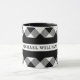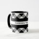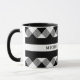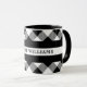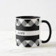 Have your morning cup of coffee in style with the personalised coffee mug. This design features a thin white line across the centre with a name in black typogrpahy for you to personalise bordered by black with a trendy black and white buffalo plaid adding a touch of rustic. The perfect gift for EMS and EMT first responders. Designed by artist ©Susan Coffey.