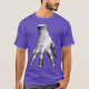 I give wanted to give this a 4 instead of a 5 because these Basic DARK T0shirts run unexpectedly SLIM or Narrow. Which is great if you do not have a potbelly, but I have a paunch. It isn't the shirt's fault that I've got a beer belly. The design and shirt itself is a quality cotton shirt. The color is more of a deep purple, but still a very pretty color. The Basic DARK T-shirts run a bit SLIMMER than the Basic Ts. The neck is a fraction narrower (or seems to be narrower) also. I'm a paunchy middle-aged woman and my neck is 12 inches (31cm) thick and the neckline fell about the same as in the photo of the man, and I had the desire to tug it a bit. So if you're a thick necked man or like loose shirts, be aware these are slimmer shirts. Once I get rid of my lockdown paunch it'll look great. The shirt washed well in cold water with no apparent bleeding. We don't have a dryer, so it hung dry. Did not shrink. Love the colors and the design. The design looks smaller on my shirt than it does on the model on-line. But still, it looks good on the shirt. The printing looks as it does on the model, just the size seems fractionally smaller. Washed garment in cold water, hung dry and design appeared unaffected.