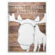 This notebook is printed with a hand-drawn moose close-up design on a wood plank background.