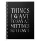 This simple notebook featuring a funny saying on the cover "Things I Want To Say at Meetings But Can't" is a great venue to express your thoughts, ideas, or just about anything that pops in your head that you can't say out loud.
