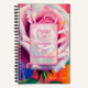 This stylish and beautiful notebook features bold coloured background with one large pink rose. The frame in the centre has a faded rose overlaid with pink script in the centre. A personalised name in elegant script is situated in the bottom write had corner.