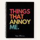 Things that annoy me notebook. Personalised simple notebook where you can add your name. Best gift for him or her.