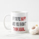 The phrase "If you're happy and you know it think again..." in grey and red text.