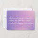 This affirmation card features a simple positive quote from Buddah on it - 'What you think, you become. What you feel, you attract. What you imagine, you create'. You can edit this text and add any phrase you want. Edit a card, add to cart, and edit again to make a deck of inspiring cards. In the background is an abstract pink and purple gradient - which you can replace with a photo of your choice. The card is also decorated with a floral mandala on the back. The mandala is an original artwork by JessicaAmber. This is an elegant tool for enhancing your spiritual focus - meditate upon the phrase, or put it in your wallet and be reminded daily of your soul's purpose. ••• For more spiritual stationery, visit my store Zazzle.com/In_The_Vortex