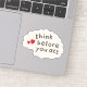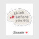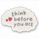 Sticker featuring the text "Think before you act" on a brain silhouette background