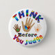 The message of “THINK Before You Judge” with hands of diversity and inclusion to respect people with autistic spectrum disorders and encourage kindness towards each other.