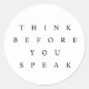 A simple and yet captivating designer sticker to remind yourself (and everybody around you) to think before speaking!