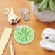Design features the text "think green," around a circular arrangement of multi-colored green leaves in the center.
