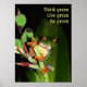 Think Green poster with a photo of a colourful frog asking you to "Think green, live green, be green". Customisable with your own text if you wish. Share your message to protect the Earth with a Think Green poster!