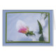 A Spring blooming pink and orange tulip bends under the weight of a day of snow showers. This green framed photograph is set over a textured blue background selected from the photograph colour palette. Personalise the inside text by filling in the template field under Personalise it, remove the text leaving room for a handwritten note or click Customise it to select a font style, size and colour you prefer.