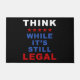 Funny anti-woke political quote, “Think, While It’s Still Legal”. Ideal for conservatives and all free thinkers.