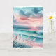 Thinking of You card for a friend or family member that can be personalised. Pretty beach scene in pastel blue and pink. Ocean waves on the sandy shore with delicate ocean weeds blowing in the breeze on a cloudy day as the sun sets.