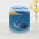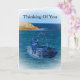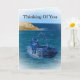 Cat Thinking Of You Card, Featured on this thinking of you card is a cat that has sneaked of in her basket on the ocean, she has disguised herself