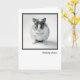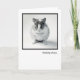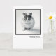 Thinking of you card features a photo of an adorable mouse with big eyes and long whiskers. Standing on a plain background with dramatic shadows and tiny front paws tucked in. This cute little critter is staring right into the camera for a wonderful picture encased in a thick black frame on a white background. Sure to make any one smile.