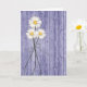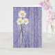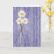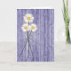 White daisy bouquet on purple rustic wood background for thinking of you.