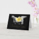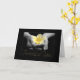 An elegant thinking of you card with a romantic photograph of a pair of hands holding a delicate yellow blossom against a black background. This beautiful flower blossom is a rare Hotei Rhododendron.