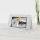A sentimental thinking of you card with a black and white photograph of a dad giving his little girl a bouquet of yellow gerbera daisy flowers.