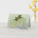 Have you been thinking of someone and want to let them know? Send this greeting card with a cover design of digitally altered photographs of two green spiral shaped tea cups with sprigs of mint sticking out of the top. The background consists of digitally altered spiral fractals of predominantly green and a complementary purple.Fill in the template field for the inside text, remove text to leave room for a handwritten note or click Customize it! to select a font style, size and color you prefer. In customize, you can also add text to the card cover. Personalize it for any occasion you would like, use as an announcement or an invitation. This design is also available in the smaller note card size.