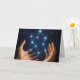 Glowing stars form a geometric shape against a starry sky, cupped gently by a pair of hands.
