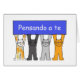 Four cartoon cats of different colours standing up on their back paws. The cats are holding up a deep blue coloured banner that says 'Pensando a te' in white text which translates as 'Thinking of you' in Italian. The image is set against a white background.