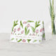 The product design features a pattern of pink tulip flowers. This botanical illustration with personalised text makes modern chic and unique greeting cards - THINKING OF YOU.